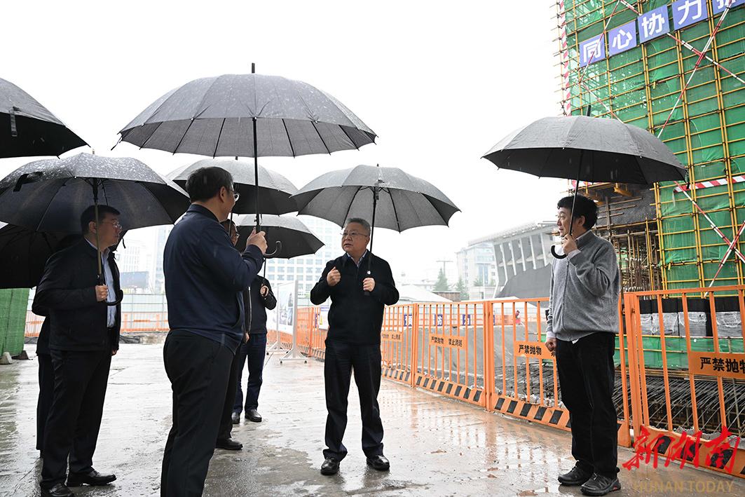 (10月30日,沈曉明在天門山索道下站旅游服務(wù)綜合體項(xiàng)目現(xiàn)場(chǎng)調(diào)研。)