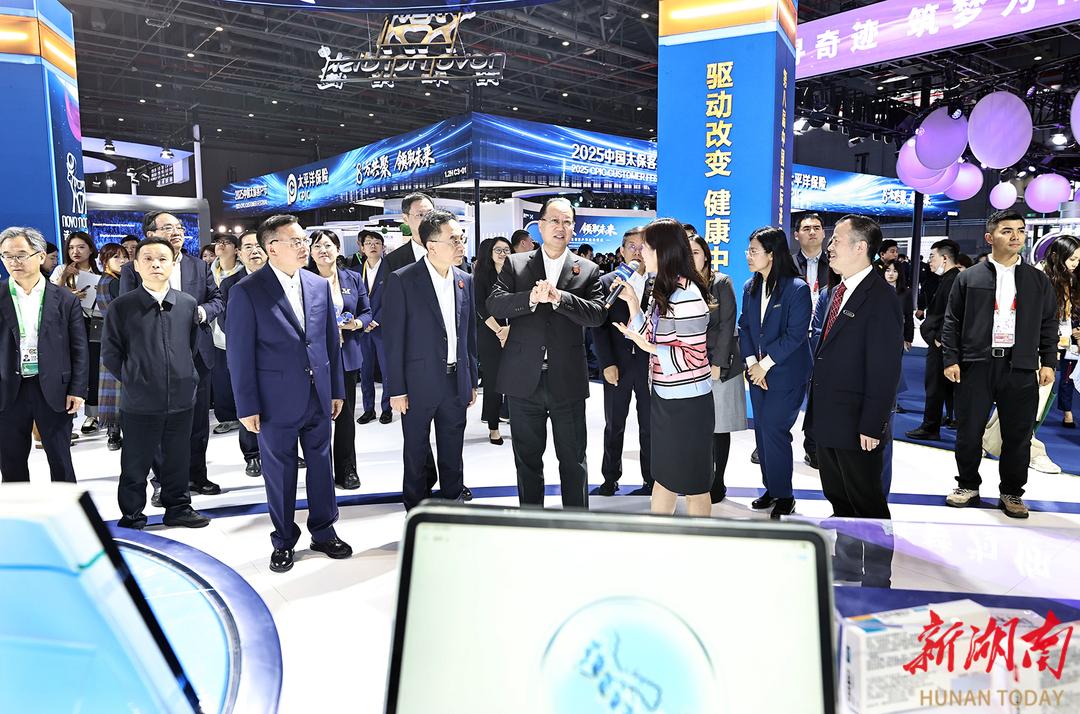 在醫療器械及醫藥保健展區,毛偉明一行先后參觀了飛利浦、諾和諾德、諾華、拜耳等企業展臺,了解新技術、新產品、新服務,現場推介湖南投資機遇。他說,生物醫藥與醫療器械產業是湖南13條重點推進產業鏈之一。誠邀大家來湘共促技術變革、共拓產業空間,與湖南高質量發展同頻共振、在未來賽道攜手奔跑。