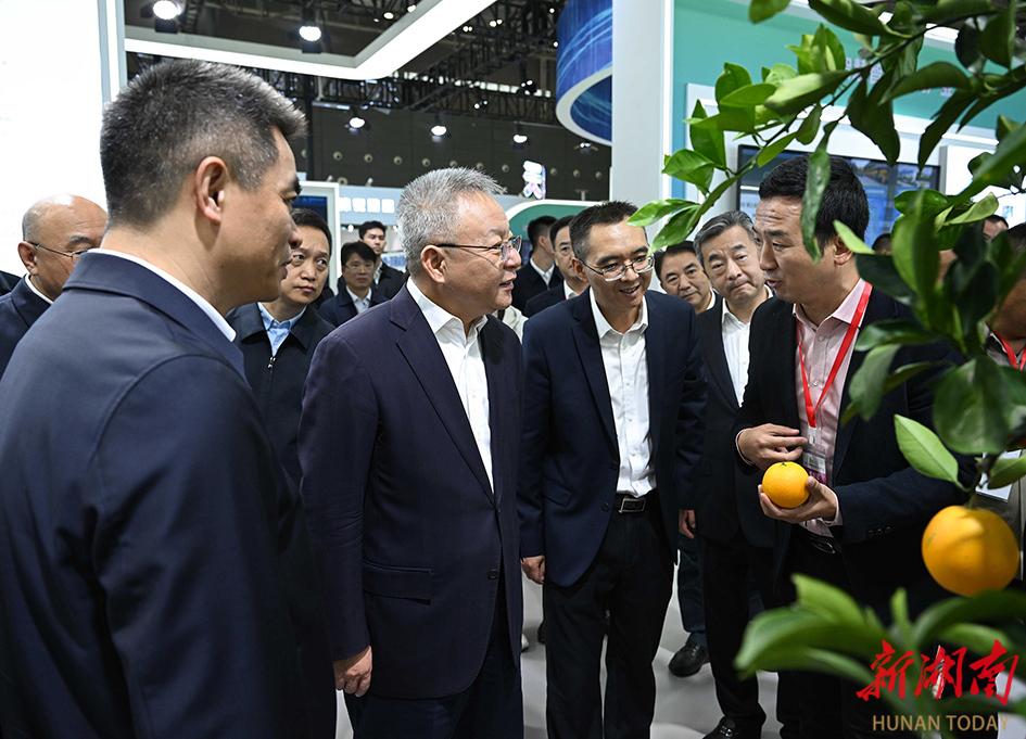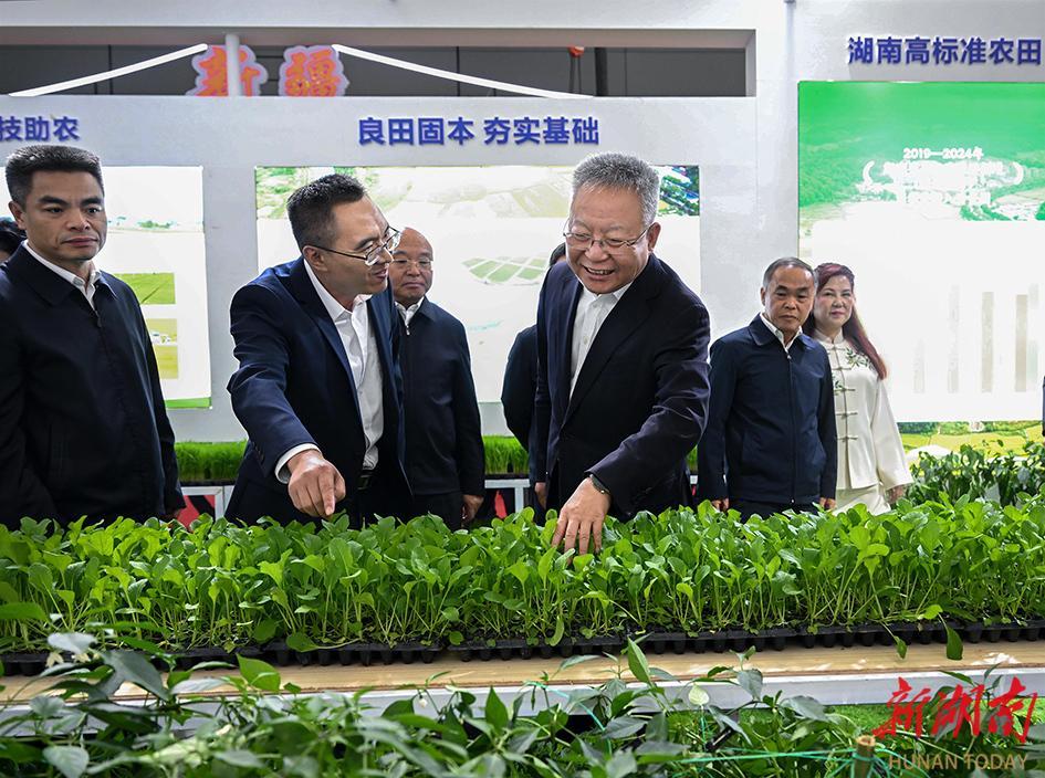 沈曉明先后來到良田良種良機(jī)良法融合成果、水肥一體化設(shè)備、現(xiàn)代設(shè)施農(nóng)業(yè)、糧油大省精品等展區(qū),以及省際交流館、湖南市州形象館,與參展單位負(fù)責(zé)人交流,了解展銷情況。他指出,要用好用足展會(huì)平臺,不斷增加優(yōu)質(zhì)農(nóng)產(chǎn)品供給,打造更多老百姓信得過的放心品牌,讓群眾享受現(xiàn)代農(nóng)業(yè)發(fā)展成果。要強(qiáng)化農(nóng)業(yè)科技創(chuàng)新,大力推進(jìn)農(nóng)業(yè)機(jī)械化、智能化,不斷提升農(nóng)業(yè)綜合生產(chǎn)能力和質(zhì)量效益。要堅(jiān)定市場化辦展方向,把辦展和招商更好結(jié)合起來,持續(xù)提高辦展能力和服務(wù)水平。