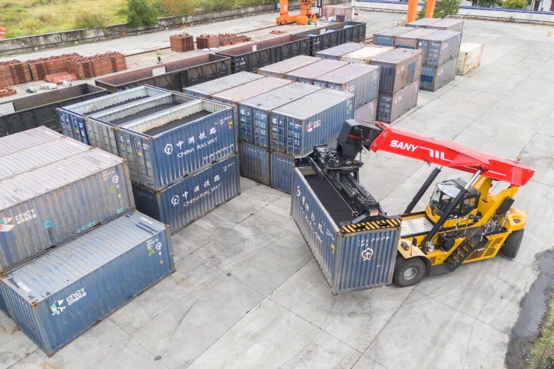 11月17日,婁底東站貨場,工作人員在有序轉運電煤。吳永華 攝(湖南圖片庫)