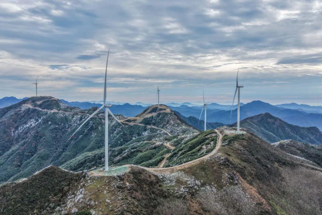 11月19日,道縣洪塘營風力發電場,風力發電機組迎風運轉。蔣克青 攝(湖南圖片庫)
