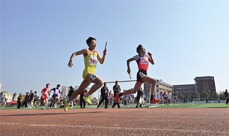 11月15日,花垣縣華鑫學校田徑場,運動員在參加接力賽。連日來,該縣舉行“奔跑吧·少年”2025年全縣“體彩杯”中小學生田徑運動會,推動青少年體育鍛煉協調發展,營造積極向上的校園體育氛圍。 龍恩澤 攝