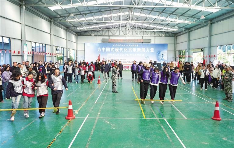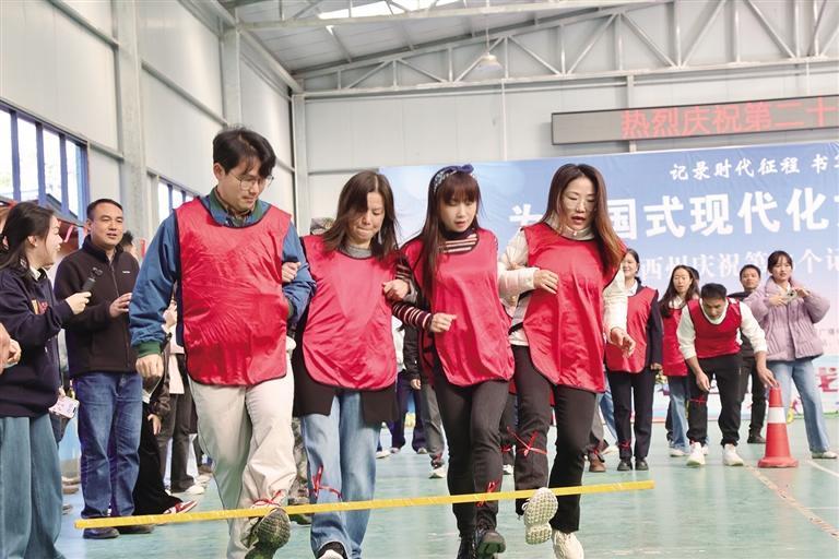 趣味運動“勾肩搭腳” 。 團結報全媒體記者 胡承鼎 攝
