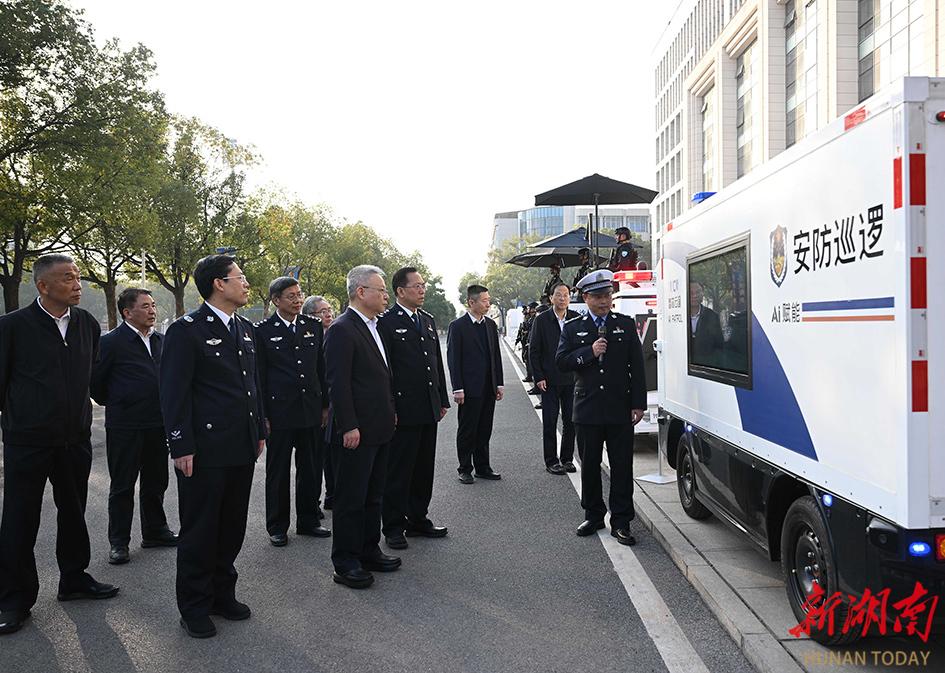 來到省公安廳刑事科學(xué)技術(shù)研究所和偵查(反詐)中心,沈曉明走進(jìn)相關(guān)實驗室,了解刑事科學(xué)技術(shù)發(fā)展、打擊電信詐騙等情況。在湖南警察學(xué)院低空安全治理實驗室,沈曉明詳細(xì)了解警用無人機(jī)實戰(zhàn)應(yīng)用場景、產(chǎn)學(xué)研融合以及公安人才培養(yǎng)等情況。沈曉明還參觀了“十四五”湖南公安成果展、公安部智慧軟件研發(fā)中心(長沙)成果展、新質(zhì)戰(zhàn)斗力裝備展,并察看了移動警務(wù)指揮平臺和公安民警訓(xùn)練情況。
