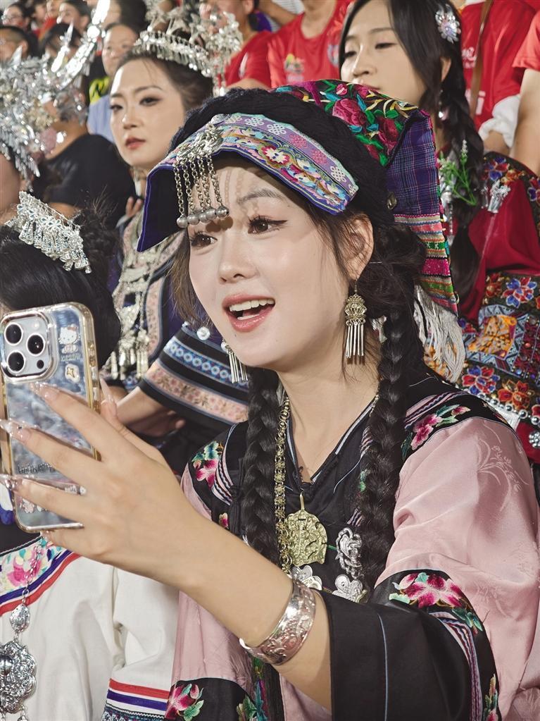 身著民族服裝,在自己的主場為自己的球隊加油。團結報全媒體記者 朱開朗 攝