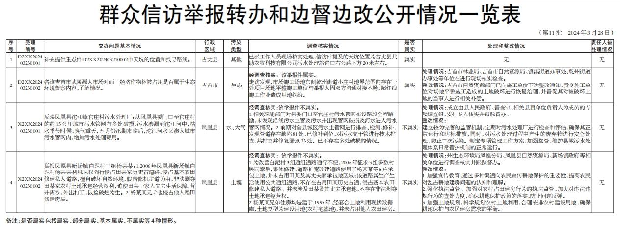 群眾信訪舉報轉辦和邊督邊改公開情況一覽表(3月28日)