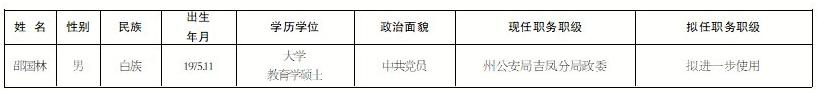 加強(qiáng)對干部選拔任用工作的監(jiān)督,提高識別和任用干部的準(zhǔn)確度,現(xiàn)對州委常委會會議研究決定的下列1名擬任職人選予以任前公示: