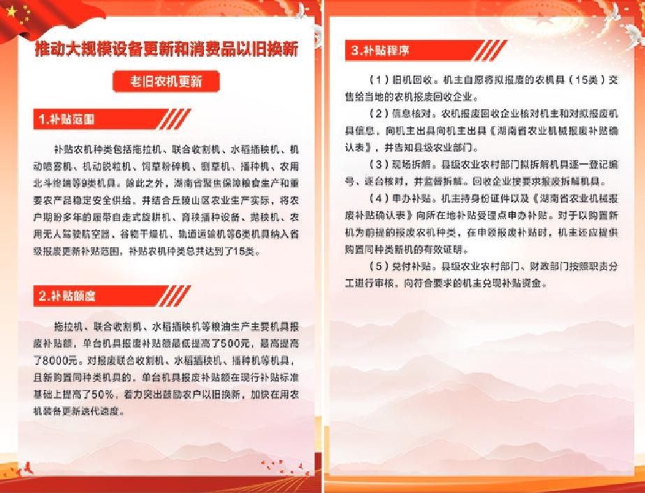 湘西州推動大規模設備更新和消費品以舊換新:老舊農機更新